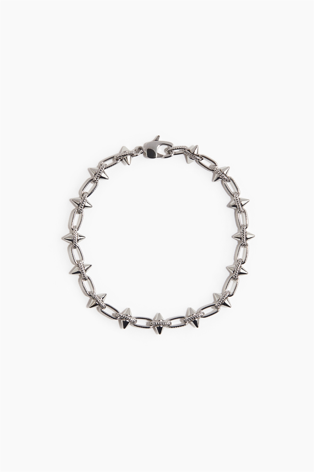 Металлический браслет с деталями в виде шипов и застежкой-курок.