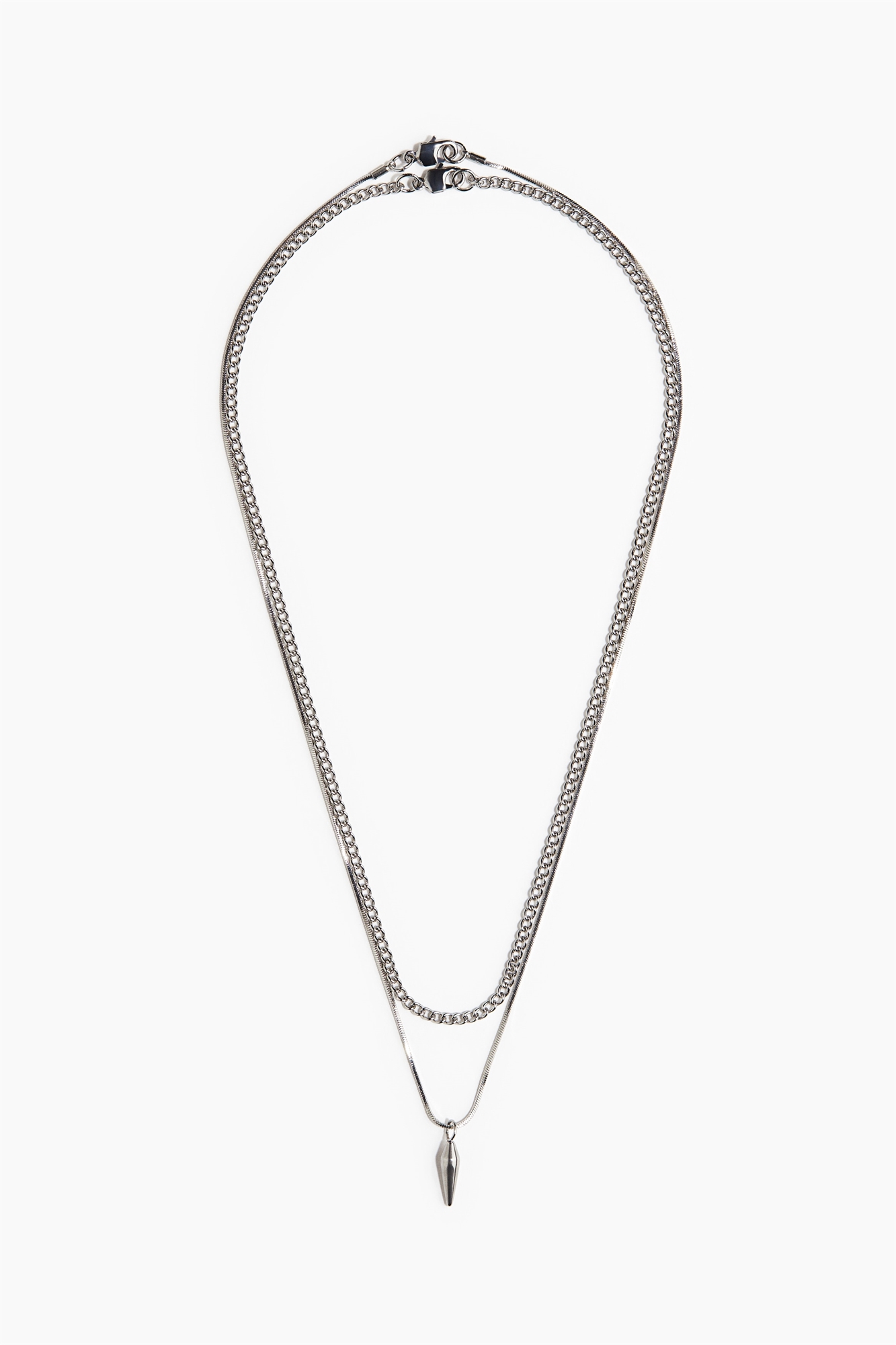 Ожерелья из металлических цепочек разного дизайна с застежкой-триггером. На одной цепочке одна подвеска.