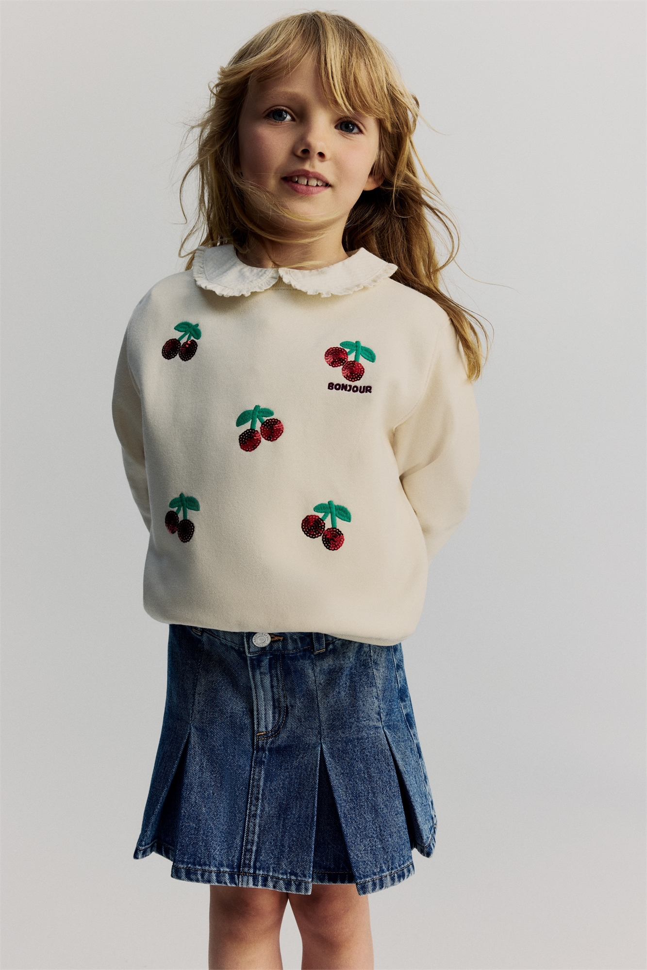 Топ с длинными рукавами из толстовочной ткани с мягкой начесом внутри. Круглый вырез с ребристой отделкой, манжеты и подол в рубчик.