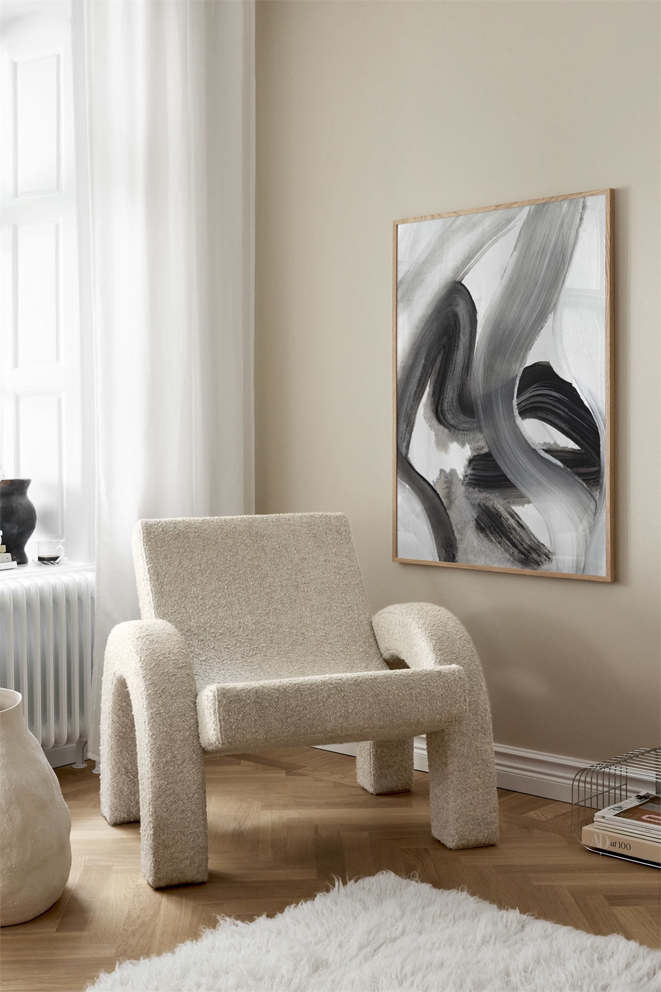 Смелая композиция из размашистых черных, белых и серых мазков передает ритм шторма.