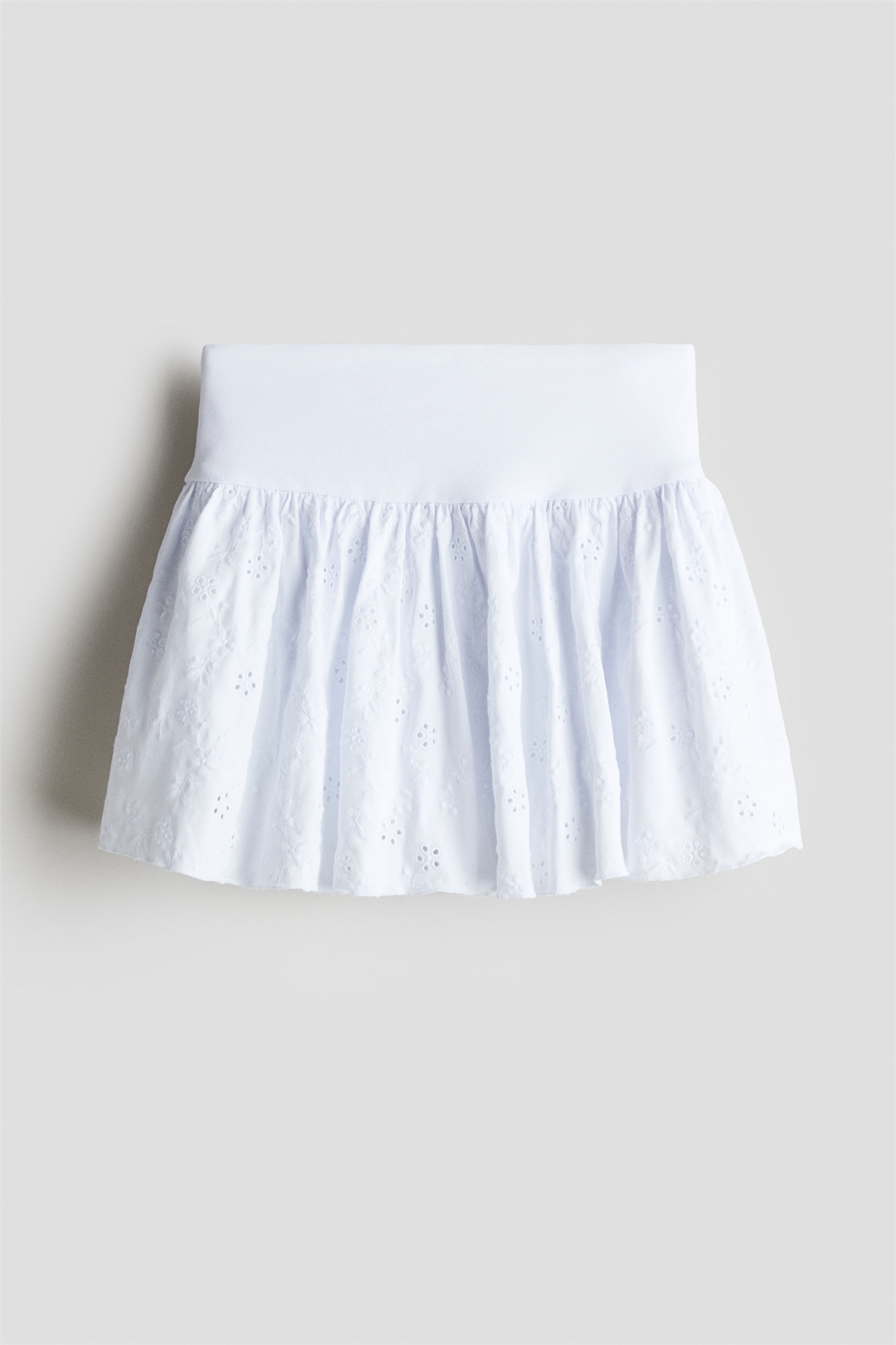 Юбка из мягкого хлопкового джерси с рисунком бродери-англиз и широким поясом с эластичной вставкой.