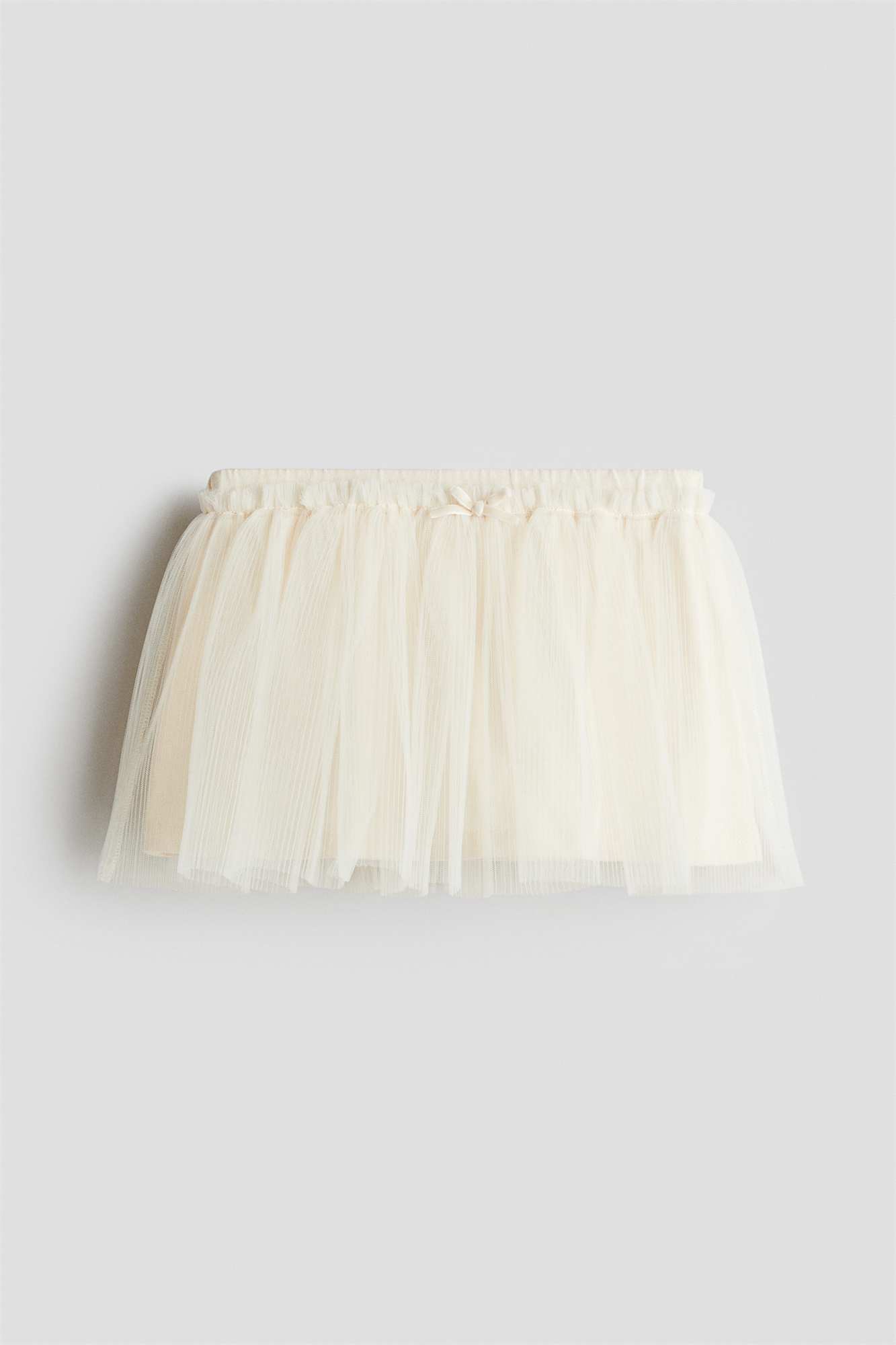 Юбка из тюля плиссе с небольшой оборкой в верхней части. Закрытая, регулируемая резинка на талии, украшенная маленьким велюровым бантиком спереди. На подкладке.