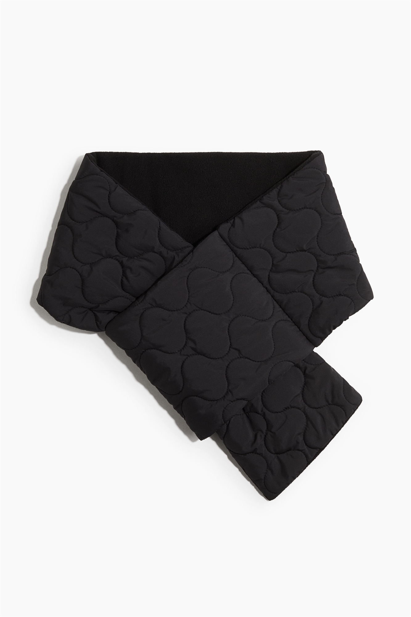 Шарф из стеганого полотна с теплой флисовой подкладкой, с незаметным боковым отверстием для обертывания.