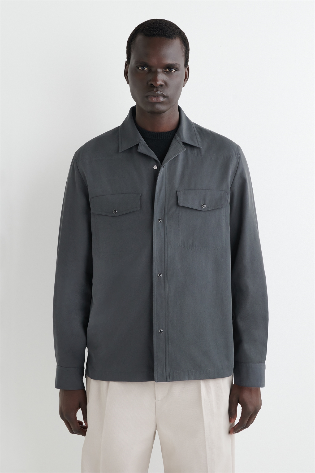 Команда мужской моды COS переосмыслила рубашку в стиле вестерн для сезона осень-зима 2025. Эта современная модель сшита из мягкого хлопкового микса угольного оттенка и оформлена в духе классической Америки: воротник-стойка, нагрудные карманы и застежка на кнопки. Подойдите к джинсам или подходящим брюкам. Regular fitPress-stud closureTENCEL™Lyocell - это регенерированное древесное волокно, изготовленное из целлюлозы. Оно производится по замкнутому циклу, где химикаты используются повторно Материал: 40% хлопка, 33% TENCEL™ Lyocell, 27% переработанного полиэстера. Без учета отделки / Машинная стирка Длина по спинке для размера M составляет 75 см / Модель носит размер M