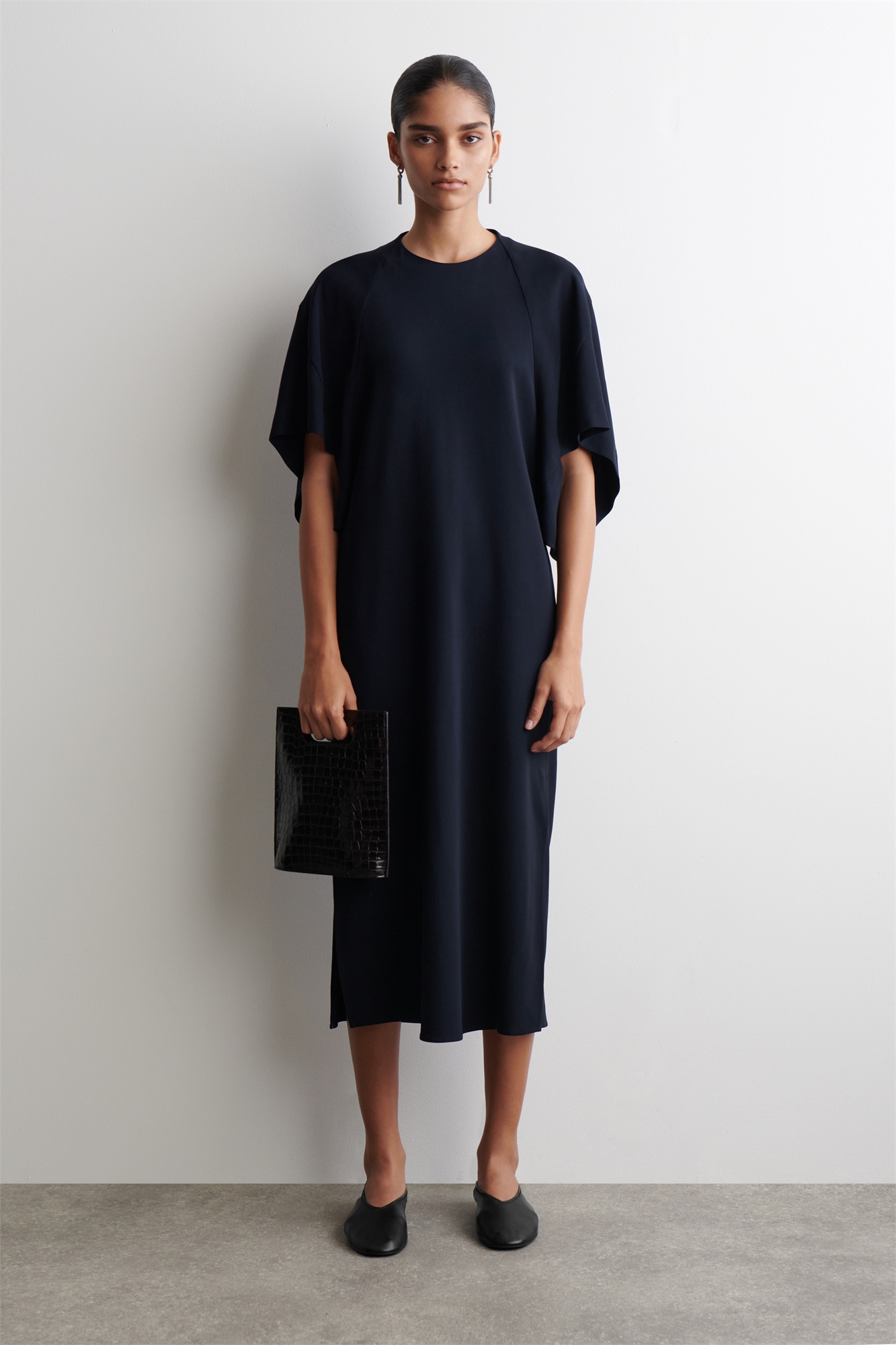 Это сдержанное платье-миди предлагает легкий подход к вечерним нарядам. Оно сшито из эластичной вискозы полуночно-темного оттенка и имеет скульптурную форму, которая легко драпируется сзади. Дополните его туфлями на каблуках-лодочках. Regular fitЗастежка на молнии Материал: 100% вискоза. Подкладка карманов: 100% хлопок. Без учета отделки / Машинная стирка Длина по спинке для размера EU 36 составляет 122,8 см / Модель носит размер EU 36
