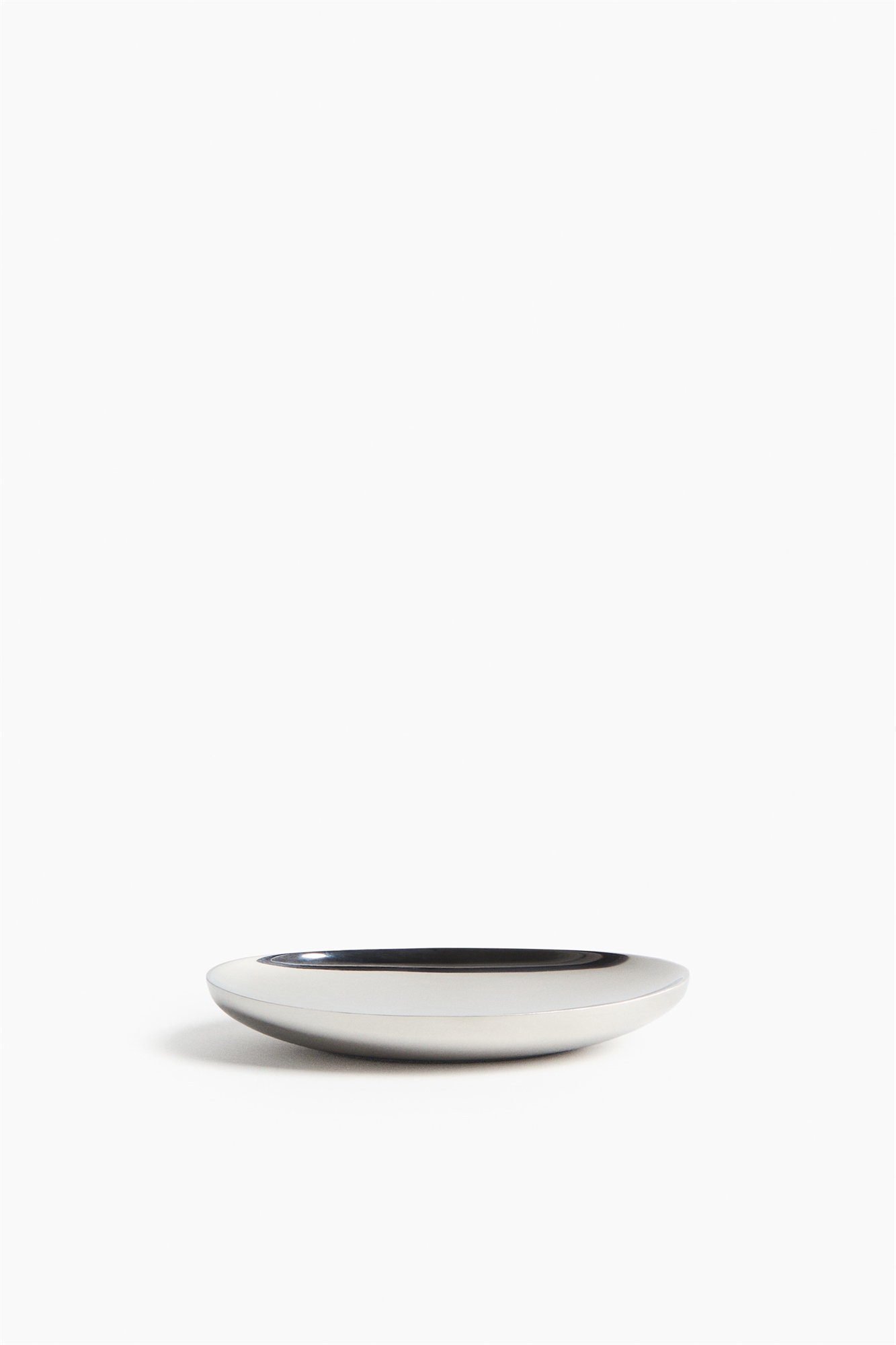 Маленькая безделушка из нержавеющей стали с овальным дизайном и тонкими краями.