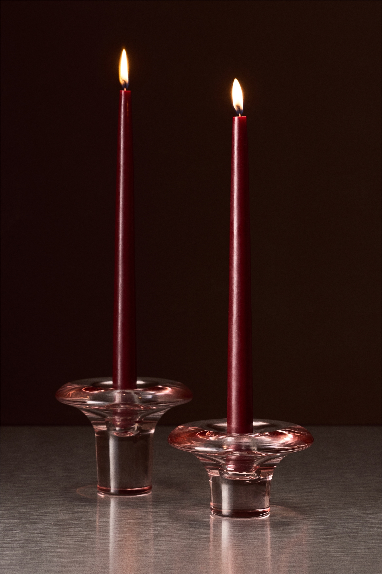 Стеклянный подсвечник с расклешенной верхней частью. Изогнутая форма и гладкая поверхность прекрасно улавливают и отражают свет свечи, придавая мягкое сияние и скульптурную элегантность любой обстановке.