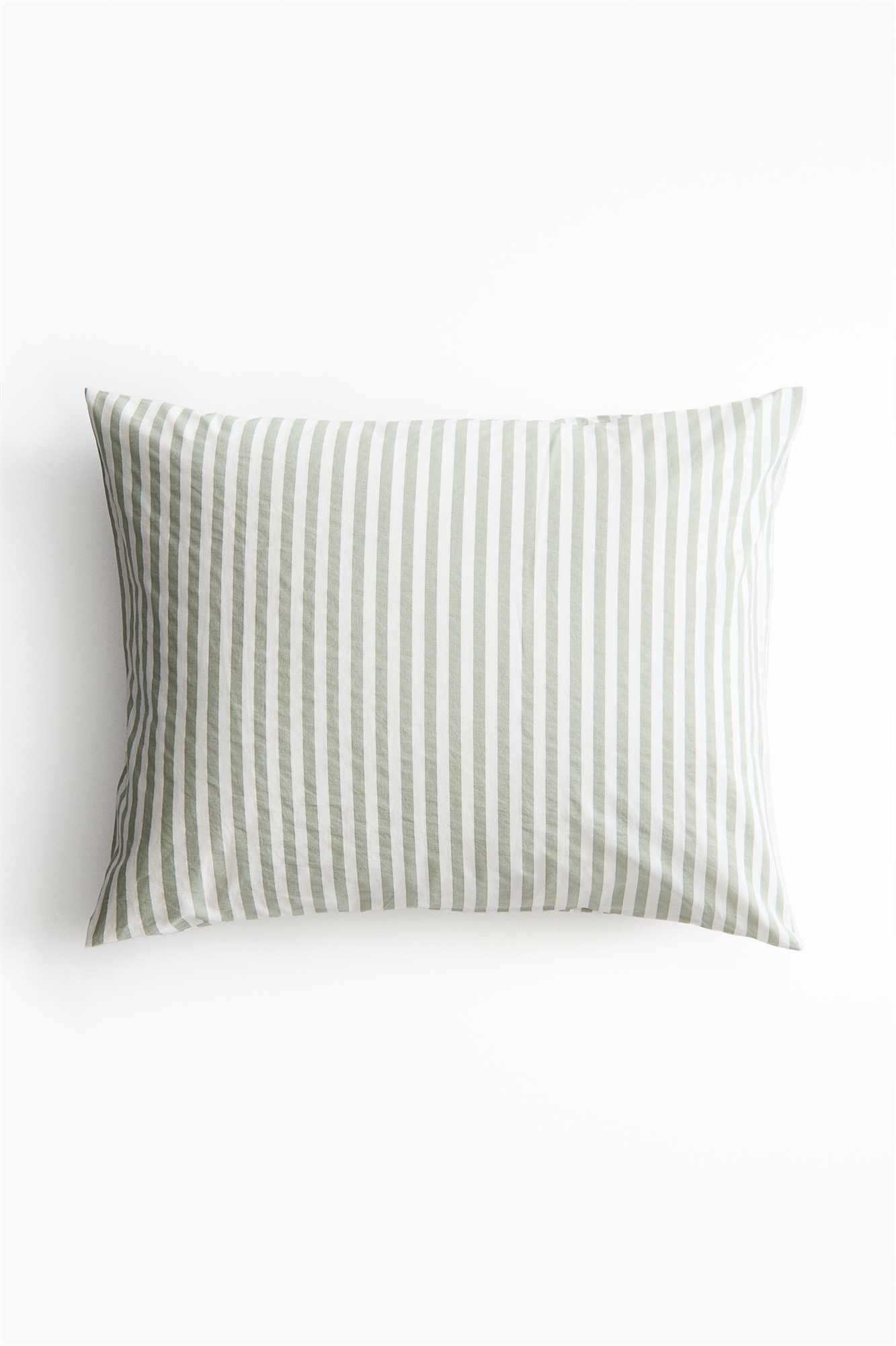 Полосатая наволочка из хлопкового полотна с отверстием-конвертом сзади.