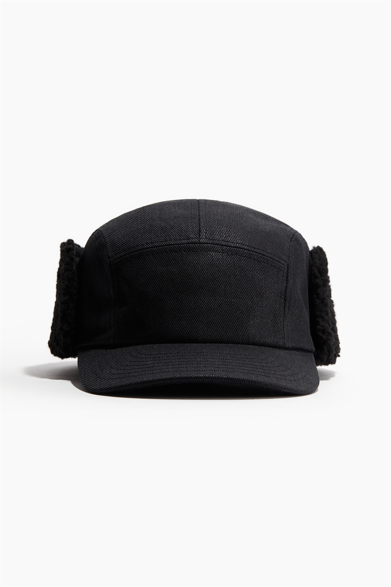 Шапка из тканого материала с прижимной планкой над каждым ухом и плюшевой подкладкой.