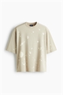 Футболка в стиле бокси из хлопкового джерси с рисунком в крапинку, круглым вырезом с ребристой отделкой, спущенными плечами и прямым покроем. Посадка оверсайз для свободного силуэта.