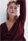 Облегающий топ с длинными рукавами из джерси с легким блеском. Глубокий вырез-лодочка и сборки по бокам, подчеркивающие эффект драпировки.