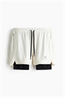 Спортивные шорты средней длины из функциональной ткани DryMove™, которая отводит влагу от кожи, обеспечивая комфортную сухость во время движения. Регулярный крой с утяжкой и эластичным поясом на талии. Диагональные боковые карманы и карман на молнии в одном боковом шве. Прорезь по бокам на подоле. Шорты надеваются поверх велошорт из джерси с открытым карманом на одной штанине.