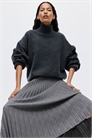 Плиссированная юбка длиной до колен из тканого материала с легким блеском. Высокая талия с узкой эластичной резинкой. Без подкладки.