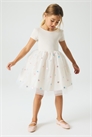 Платье с короткими рукавами из мягкого трикотажа с круглым вырезом и объемной юбкой. Юбка на подкладке.