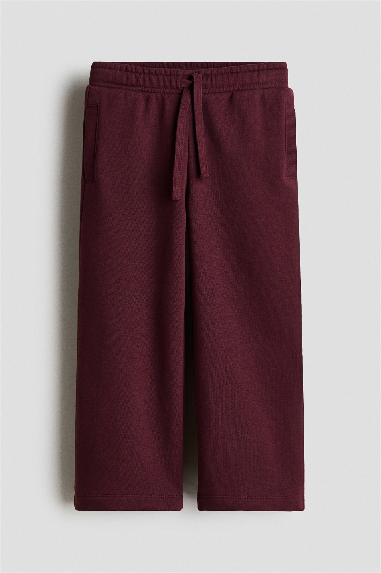 Джоггеры из легкой толстовочной ткани с мягкой ворсистой внутренней стороной. Эластичный пояс с завязками, боковые карманы и широкие штанины.