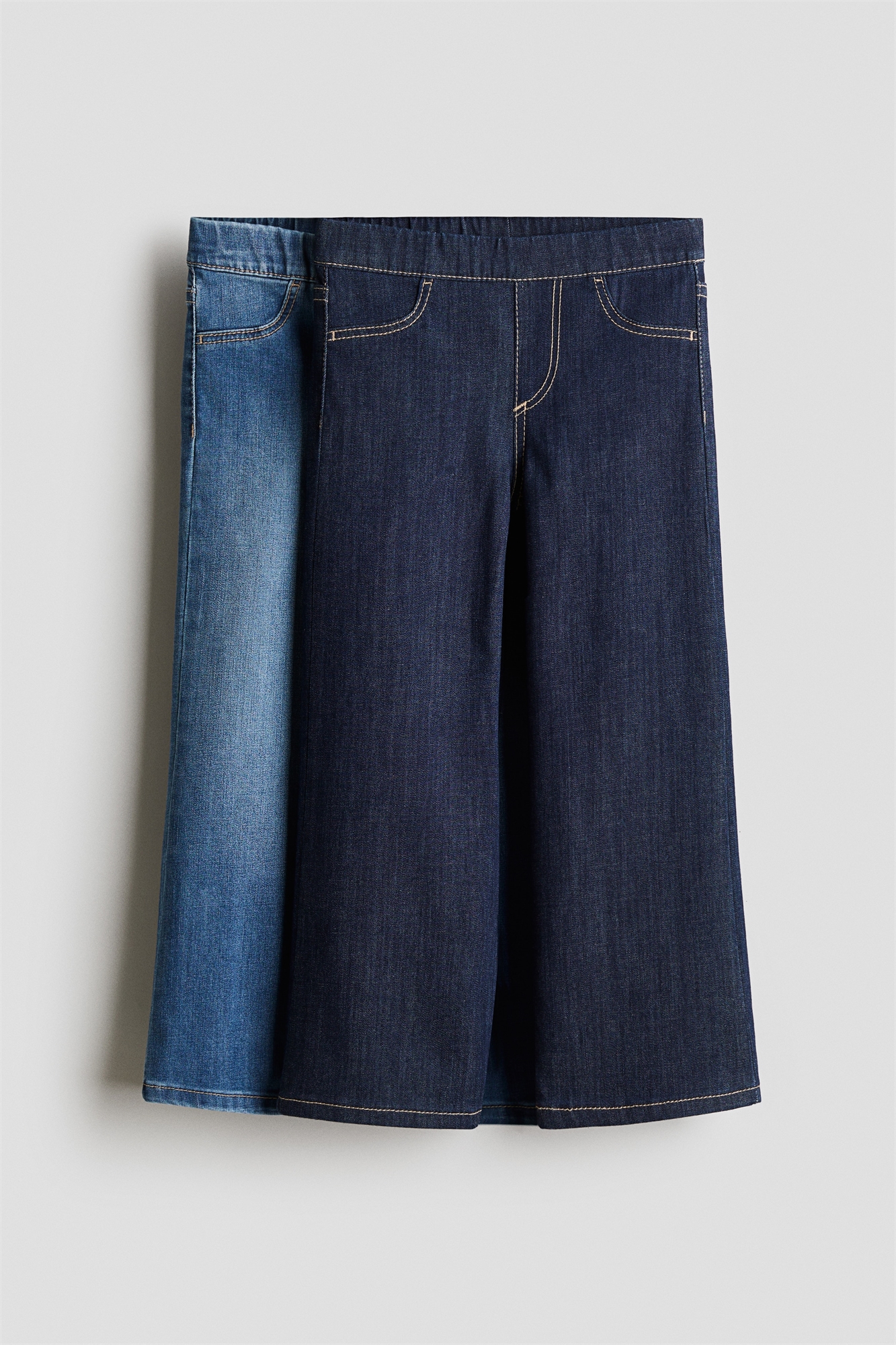 Джинсы из мягкого, эластичного хлопкового денима. Зауженный крой по бедрам и ляжкам с широкими штанинами. Эластичная резинка на талии, фальшивая ширинка, декоративные передние карманы и открытые задние карманы.