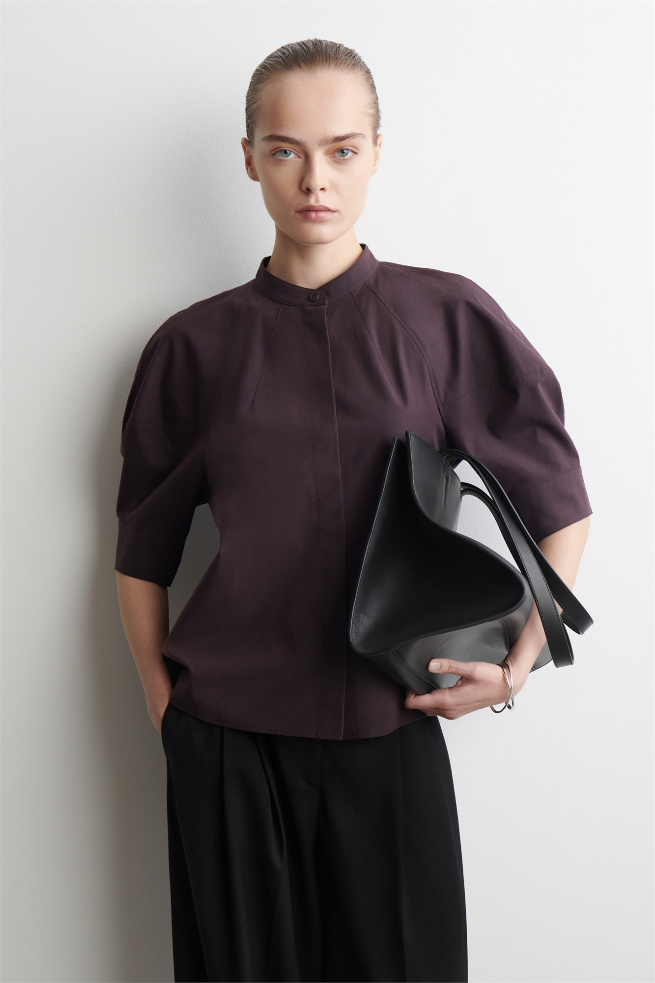 Команда дизайнеров женской коллекции COS представляет современную интерпретацию женственности в наступающем сезоне. Эта утонченная блузка из легкого хлопка и TENCEL™ Lyocell имеет закругленный воротник-стоечку, объемные рукава реглан и слегка расклешенный силуэт. Регулярная посадкаПуговицыTENCEL™ Lyocell - это регенерированное древесное волокно. Оно изготавливается из целлюлозы по замкнутому циклу, в котором химические вещества используются повторно Верхний материал: 50% хлопок, 50% TENCEL™ Lyocell. Детали не учитываются/Машинная стирка Длина по спинке в размере 36 = 57,3 см/Модель носит размер 36