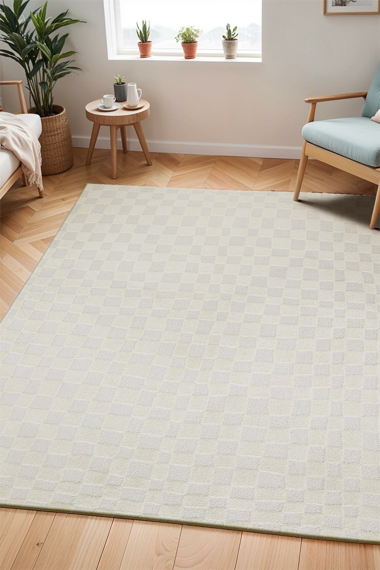 Современный ковёр «Фрейд» с высоким ворсом и шахматным узором