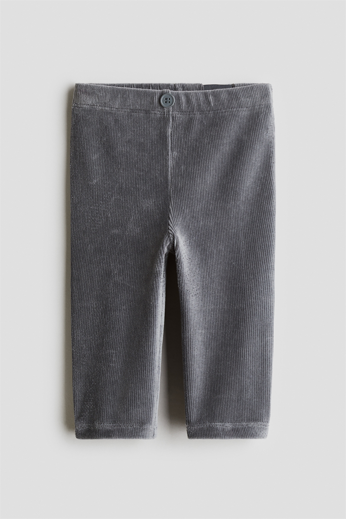 Леггинсы из мягкого ребристого велюра с декоративной пуговицей спереди и регулируемым эластичным поясом.