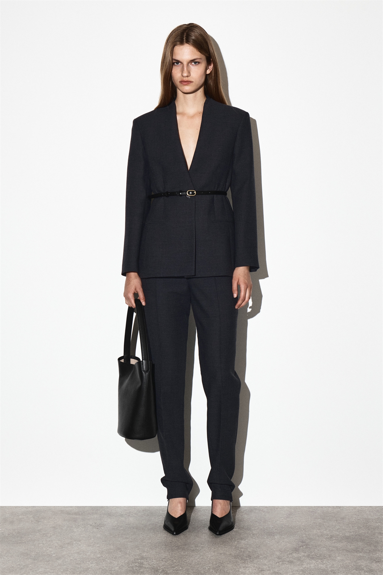 В этом сезоне в коллекции одежды COS преобладают обтекаемые силуэты. Эти утонченные брюки из шерстяной смеси RWS сшиты по зауженной, удлиненной форме с вытачками на поясе и заутюженными складками вдоль каждой штанины. Они застегиваются на скромную молнию. Подойдите к ним как к костюму с соответствующим блейзером. Зауженный кройЗастежка-молнияПереработанный полиэстер - это полиэстер, изготовленный из ПЭТ-бутылок или отслуживших свой срок текстильных отходов. ПЭТ-бутылки или текстильные отходы подвергаются механической переработке и перерабатываются в новую пряжу Материал: 53% переработанного полиэстера, 43% шерсти RWS, 4% эластана. Подкладка карманов: 100% хлопок. Без учета отделки / Сухая чистка Внутренняя длина штанины размера EU 36 составляет 79,3 см / Модель носит размер EU 36