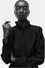 Блузка с мягким переплетением из вискозной смеси. Воротник с оборкой, застежка на пуговицы спереди и длинные пышные рукава с оборчатыми манжетами с пуговицей. Закругленный подол.