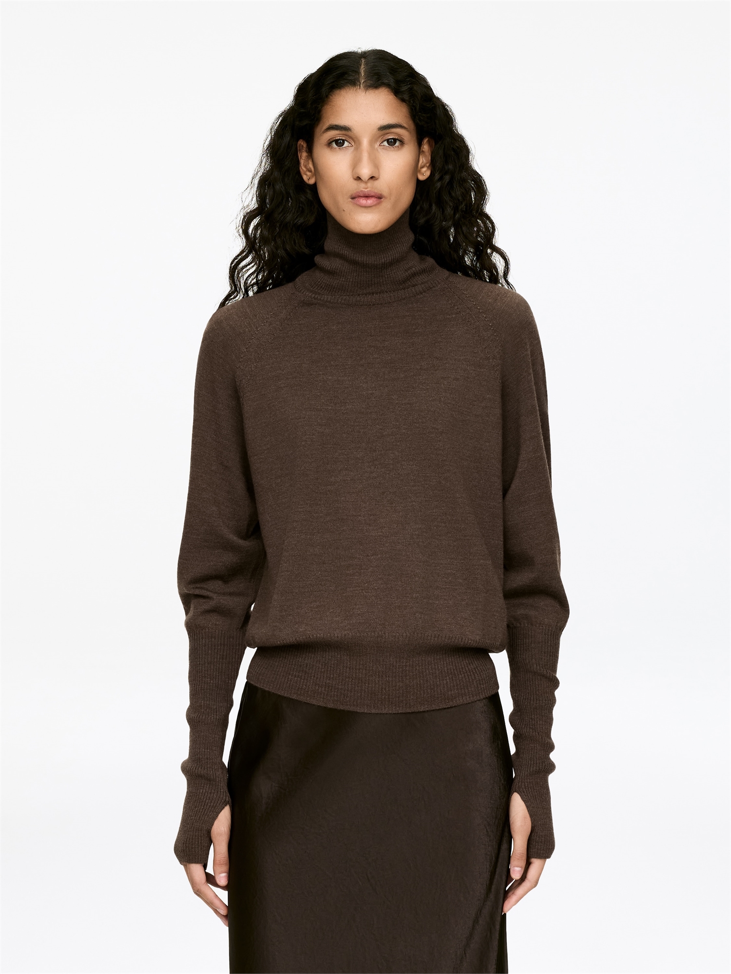 Джемпер с водолазкой из чистой шерсти. Джемпер с ребристой отделкой и очень широкими рукавами. Джемпер изготовлен из 100% шерсти NATIVARegen™, которая сертифицирована по протоколу NATIVA™. Сертификация охватывает такие области, как благополучие животных, управление земельными ресурсами и окружающей средой, а также корпоративная социальная ответственность.