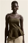 Облегающий топ-бандо с мягкой ворсистой отделкой. Скрытая силиконовая отделка спереди, скрытая резинка сзади и расклешенный пуловер со складками спереди для придания дополнительного объема.