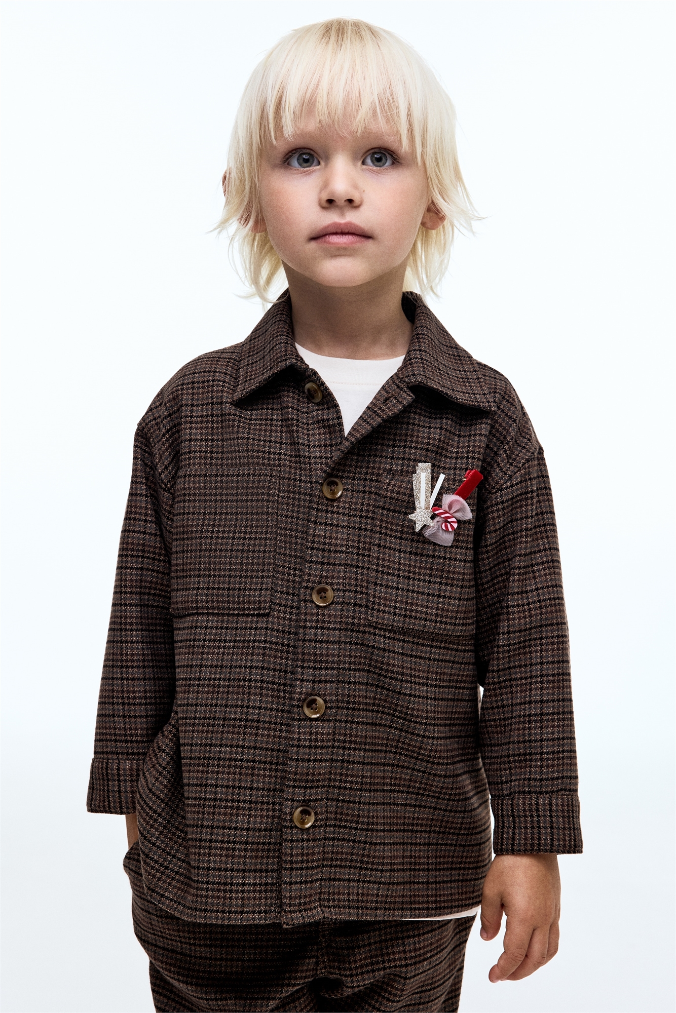 Оверсайз-рубашка из мягкой ткани с отложным воротником, пуговицами спереди и накладными нагрудными карманами. Спущенные плечи и длинные рукава с манжетами на пуговицах. Без подкладки.