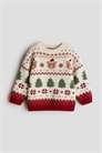 Джемпер из мягкого хлопка жаккардовой вязки с круглым ребристым вырезом на пуговицах с одной стороны, спущенными плечами, манжетами и подолом в рубчик.