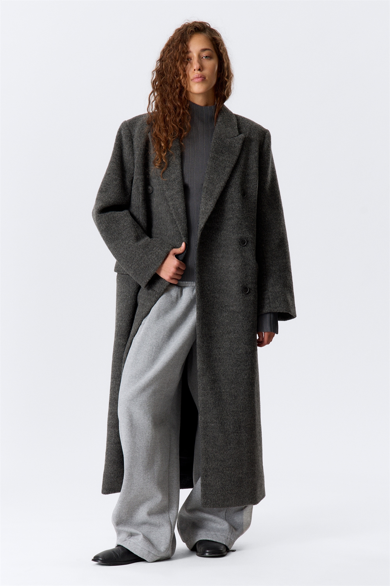 Двубортное пальто больших размеров, созданное из теплой и ворсистой шерстяной смеси для максимального комфорта. Воротник с V-образным вырезом и воротником-стойкой, мягкие плечи, декоративные и функциональные пуговицы спереди. Двойные втачные карманы, внутренний карман и высокий задний воротник обеспечивают легкость движений, поэтому эта модель идеально подходит для холодных месяцев.