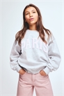 Топ из хлопковой толстовки с мягким начесом внутри и деталью из мотивов спереди. Модель в стиле оверсайз с круглым вырезом с ребристой отделкой, спущенными плечами и длинными рукавами. Ребристые манжеты и подол.