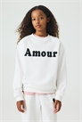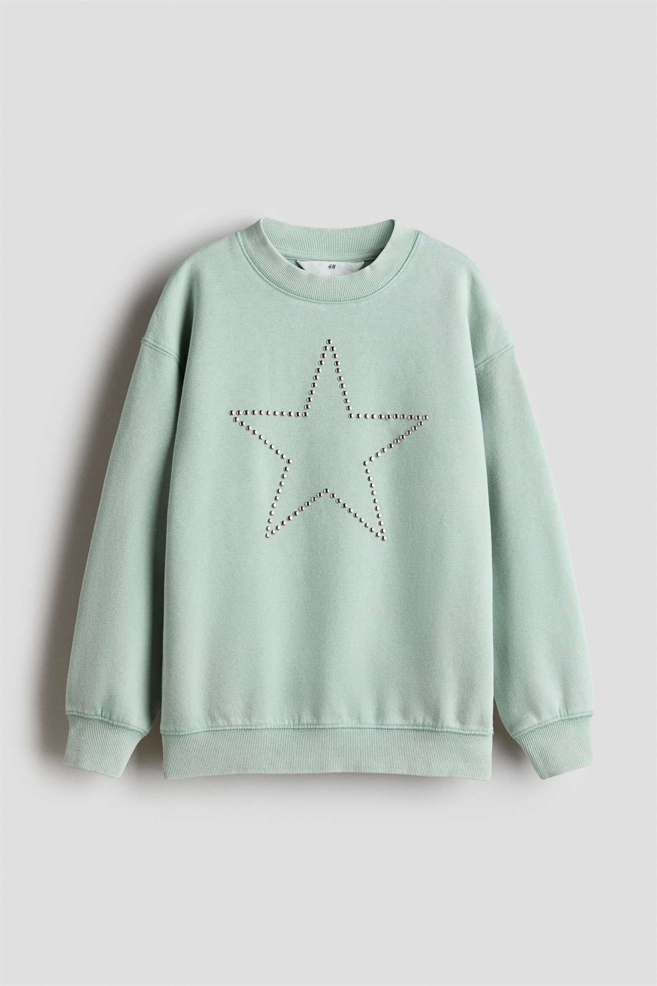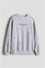 Топ из хлопковой толстовки с мягким начесом внутри и деталью из мотивов спереди. Модель в стиле оверсайз с круглым вырезом с ребристой отделкой, спущенными плечами и длинными рукавами. Ребристые манжеты и подол.