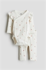 Комплект из боди и леггинсов из мягкого хлопкового пуантельевого джерси с отделкой пико. Боди с длинными рукавами, накидкой спереди и отделкой оборками на плечах. Застежки по бокам и внизу для удобства переодевания. Сборчатые швы вокруг ножек для более удобного и плотного прилегания подгузника. Леггинсы с эластичной талией.