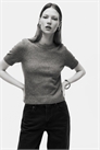 Короткий приталенный джемпер из мягкого трикотажа с круглым вырезом и короткими рукавами. Окантовка вокруг выреза, на манжетах и подоле.