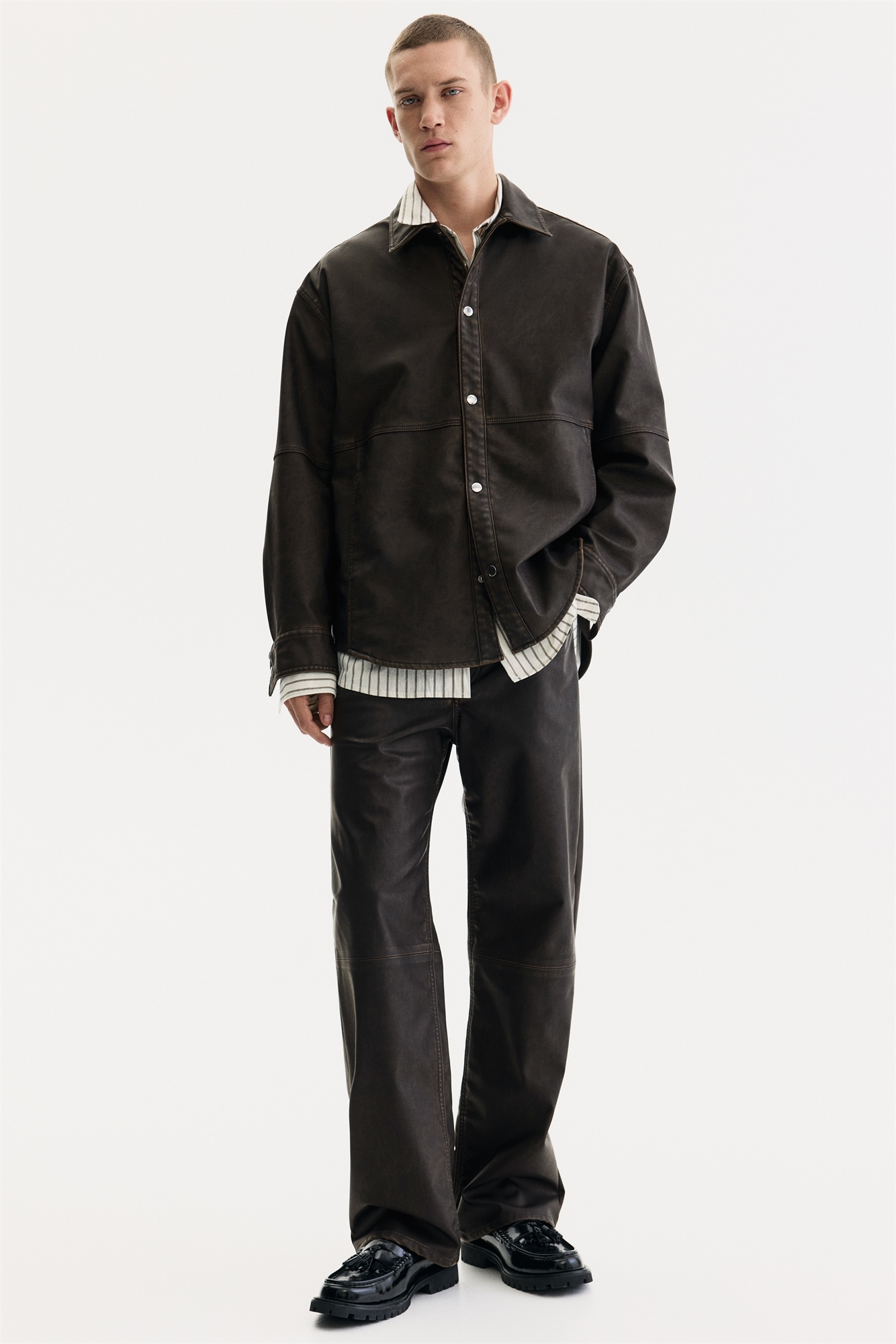 Рубашка оверсайз из мелованной ткани с отложным воротником и классическим передом с застежками. Небрежные боковые карманы, двухслойная вставка сзади и длинные рукава с разрезом и притачными манжетами. Аккуратный закругленный подол. Регулярный крой для комфортной носки и классического силуэта.
