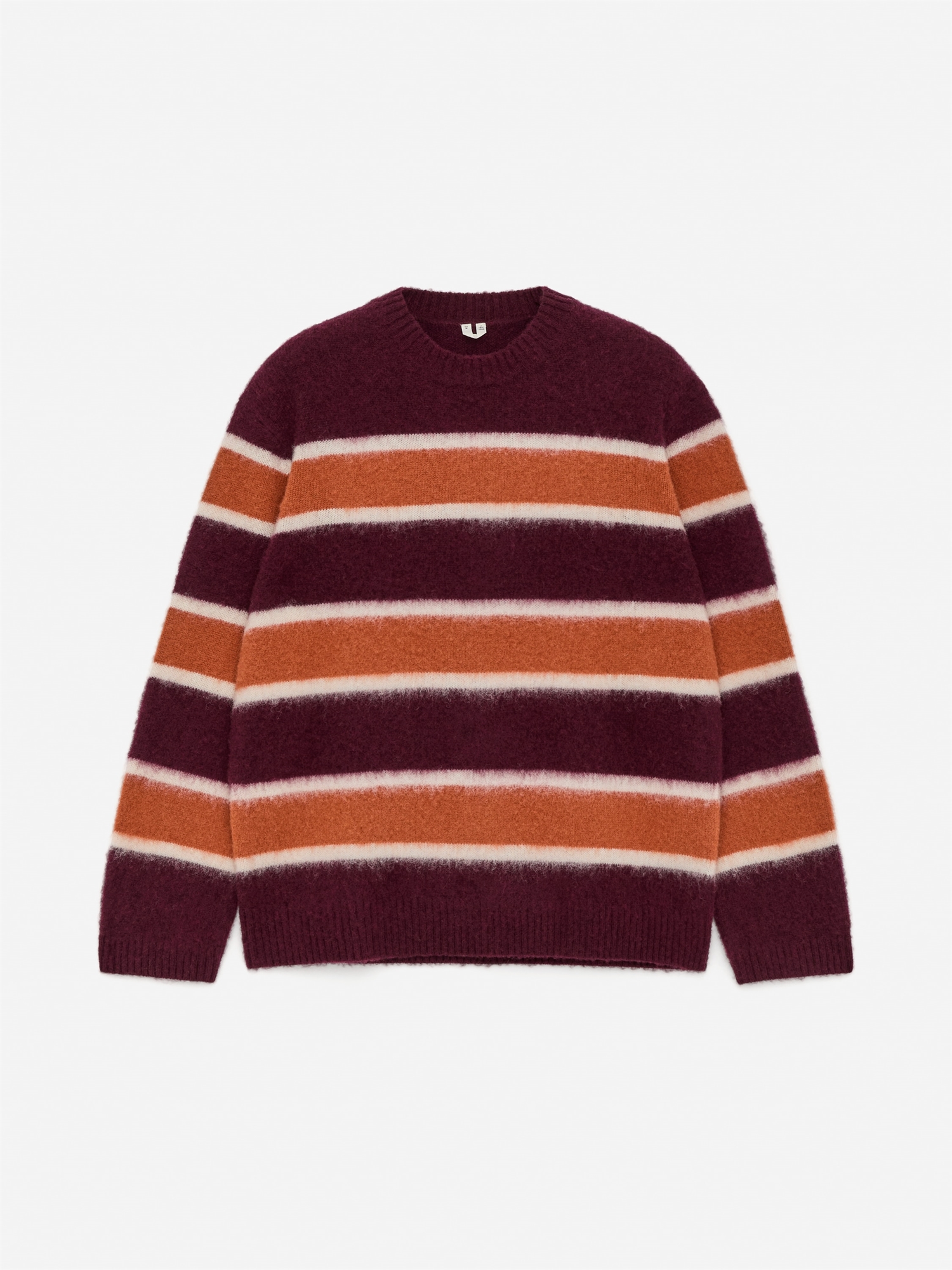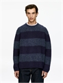 Шерстяной свитер с гладкой вязкой и полосатым узором. Круглый вырез с ребристыми манжетами. Нормальный крой.