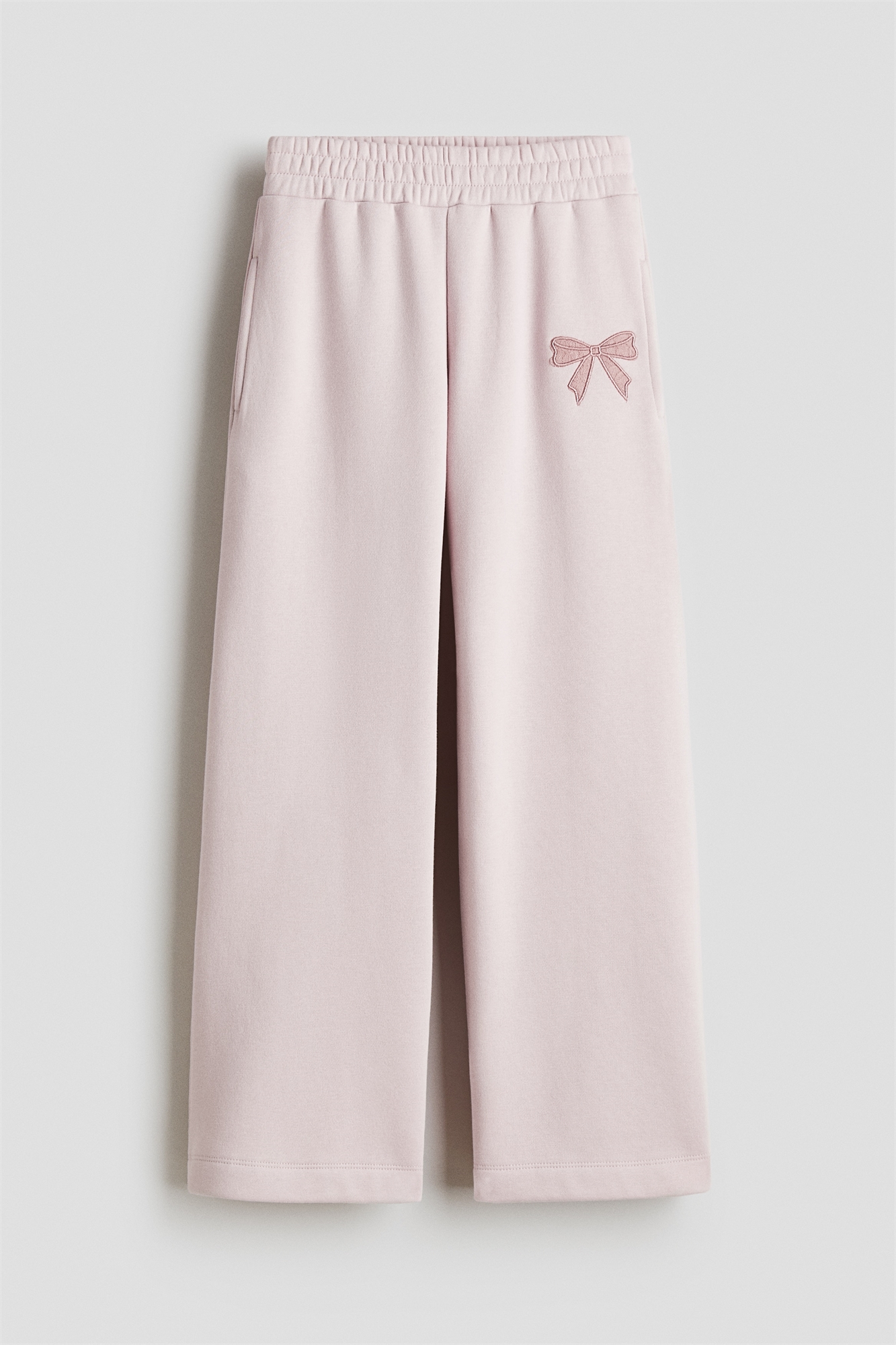Джоггеры из толстовки с мягкой ворсистой внутренней стороной и небольшим узором спереди. Присборенная резинка на талии, неброские боковые карманы и широкие прямые ноги.