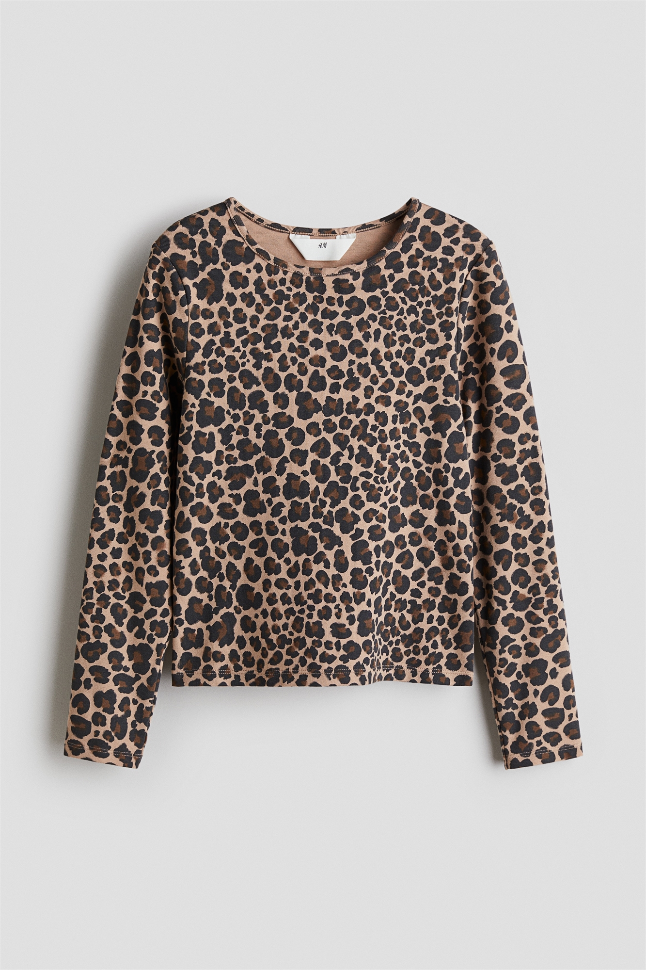 Топ с длинными рукавами из мягкого хлопкового джерси с круглым вырезом и прямым покроем.
