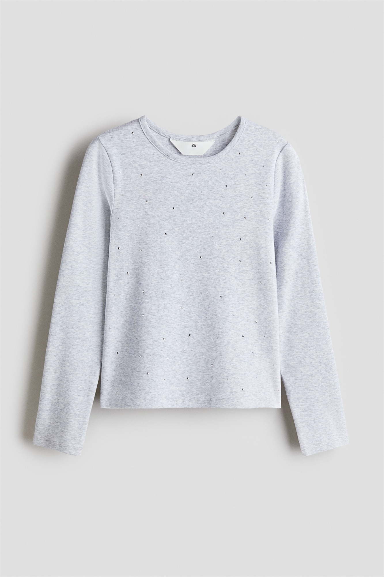 Топ с длинными рукавами из мягкого хлопкового джерси с круглым вырезом и прямым покроем.