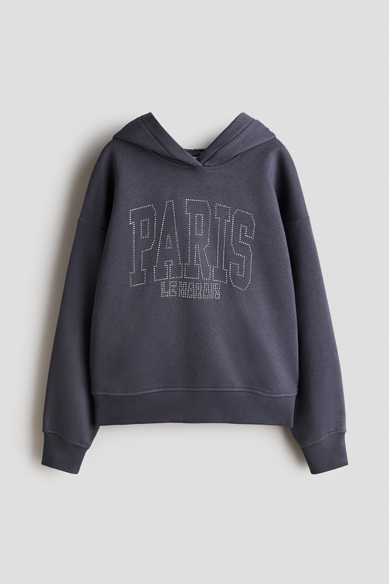 Толстовка оверсайз из толстовочной ткани с мягкой начесом внутри и деталями из мотивов спереди. Капюшон на подкладке, накидной воротник, спущенные плечи, манжеты и подол в рубчик.