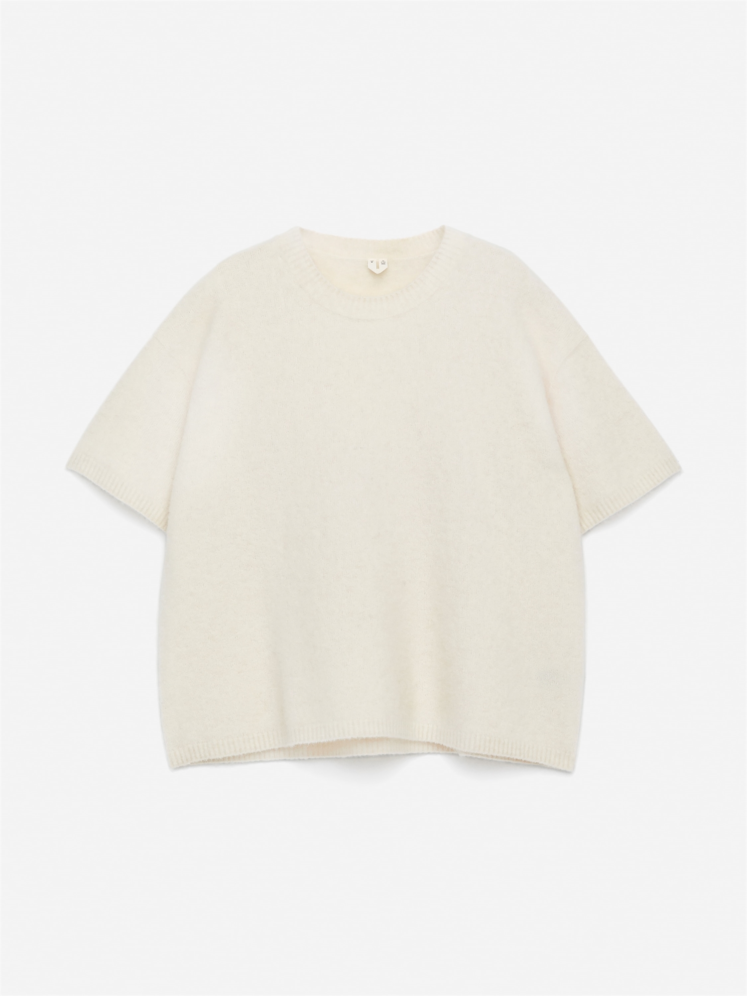 Джемпер с короткими рукавами, вязаный из смеси шерсти альпака. Классический фасон с круглым вырезом, свободный крой и отделка в рубчик.
