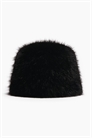 Шапка из мягкой, пушистой ткани с регулируемой резинкой сзади. На подкладке.