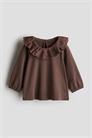 Топ из мягкого хлопкового джерси с круглым вырезом и воротником с рюшами из переплетения Broderie Anglaise. Длинные рукава реглан с узкими эластичными манжетами.