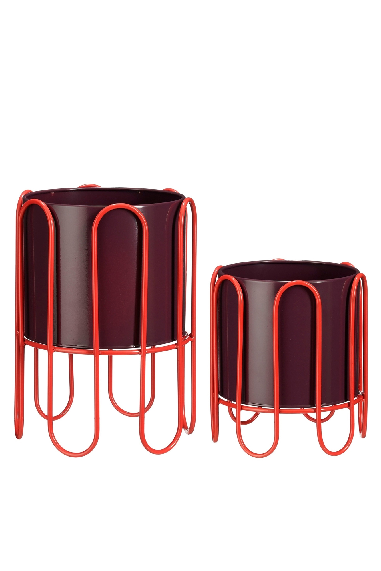 Выставьте свои растения на смелый пьедестал с помощью цветочных горшков на подставках Dione! Этот привлекательный набор представлен в цветовом сочетании двух разных оттенков красного: темно-красного и светло-красного. Металлический материал делает горшки прочными и влагостойкими, поэтому их можно без колебаний ставить в любом месте дома - от прихожей до спальни. Меньший цветочный горшок имеет размеры H25 x Ø23 см, больший - H35 x Ø25,5 см. Поставьте их вместе как дуэт или разбросайте по дому, чтобы создать цветовые акценты в разных комнатах.