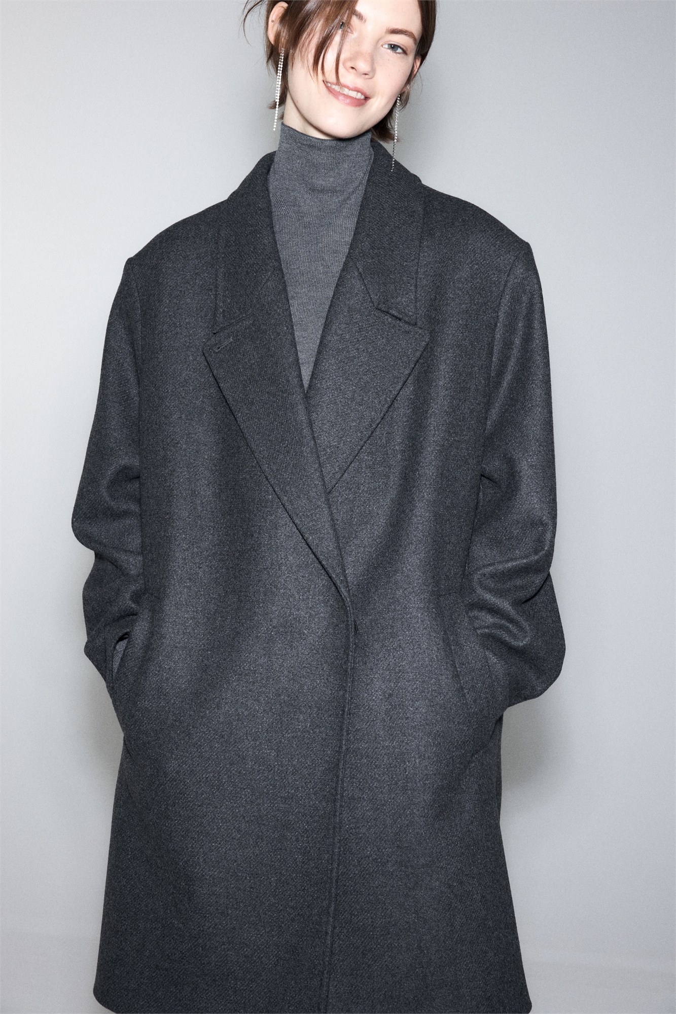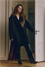 Пальто длиной до колена из микса войлочной шерсти от итальянских производителей тканей Nova Fides. С пикообразными лацканами, втачными боковыми карманами и двубортным передом со скрытыми кнопками. Плечевые накладки для придания силуэту четкости. Одиночная вентиляция сзади. На подкладке.