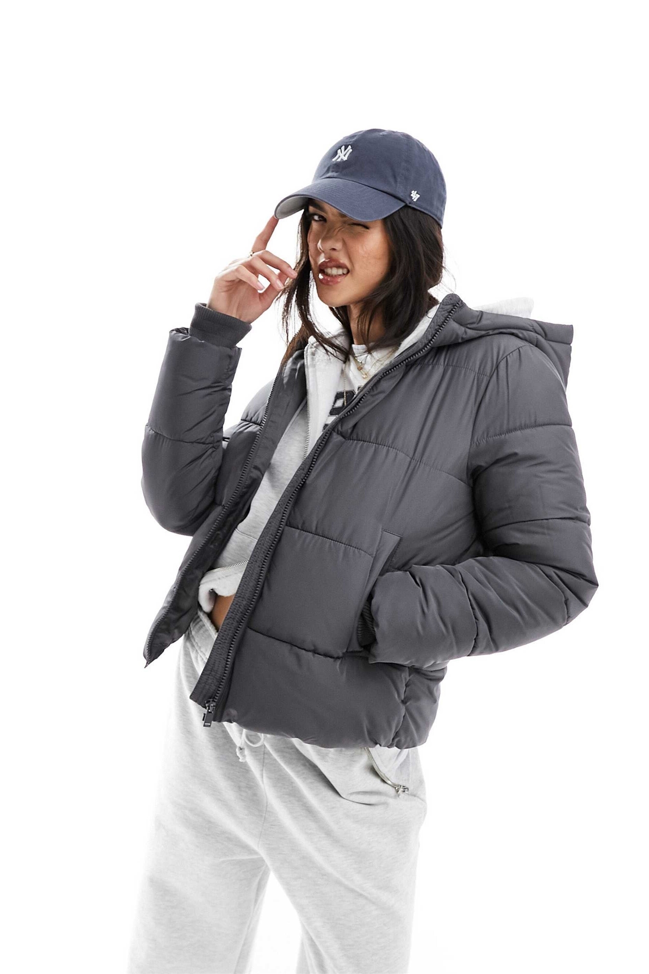 Утепленное пальто с капюшоном, угольно-серого цвета