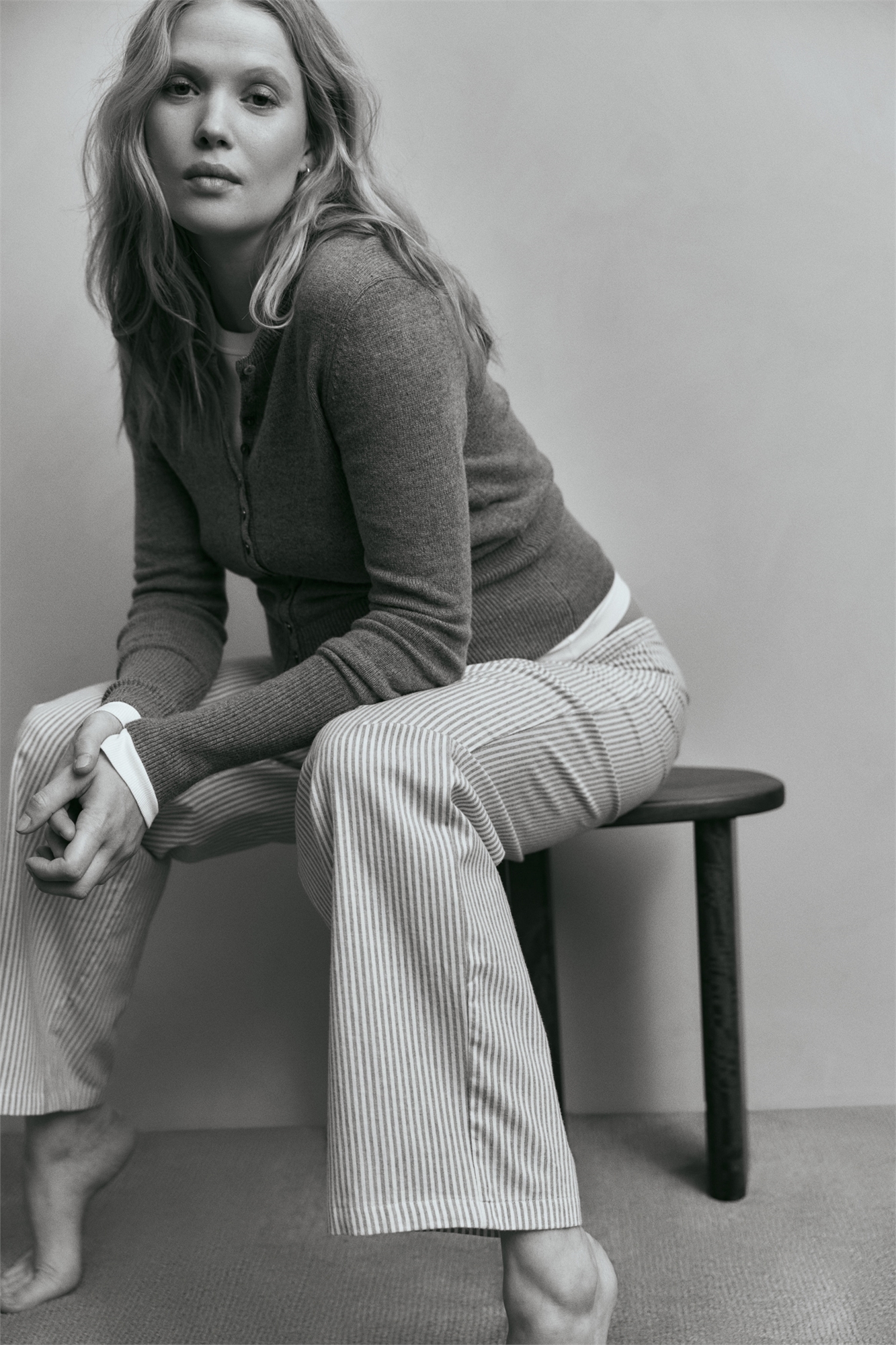 Свободные пижамные штанишки из хлопковой фланели с заниженной талией с эластичным поясом и широкими ногами.