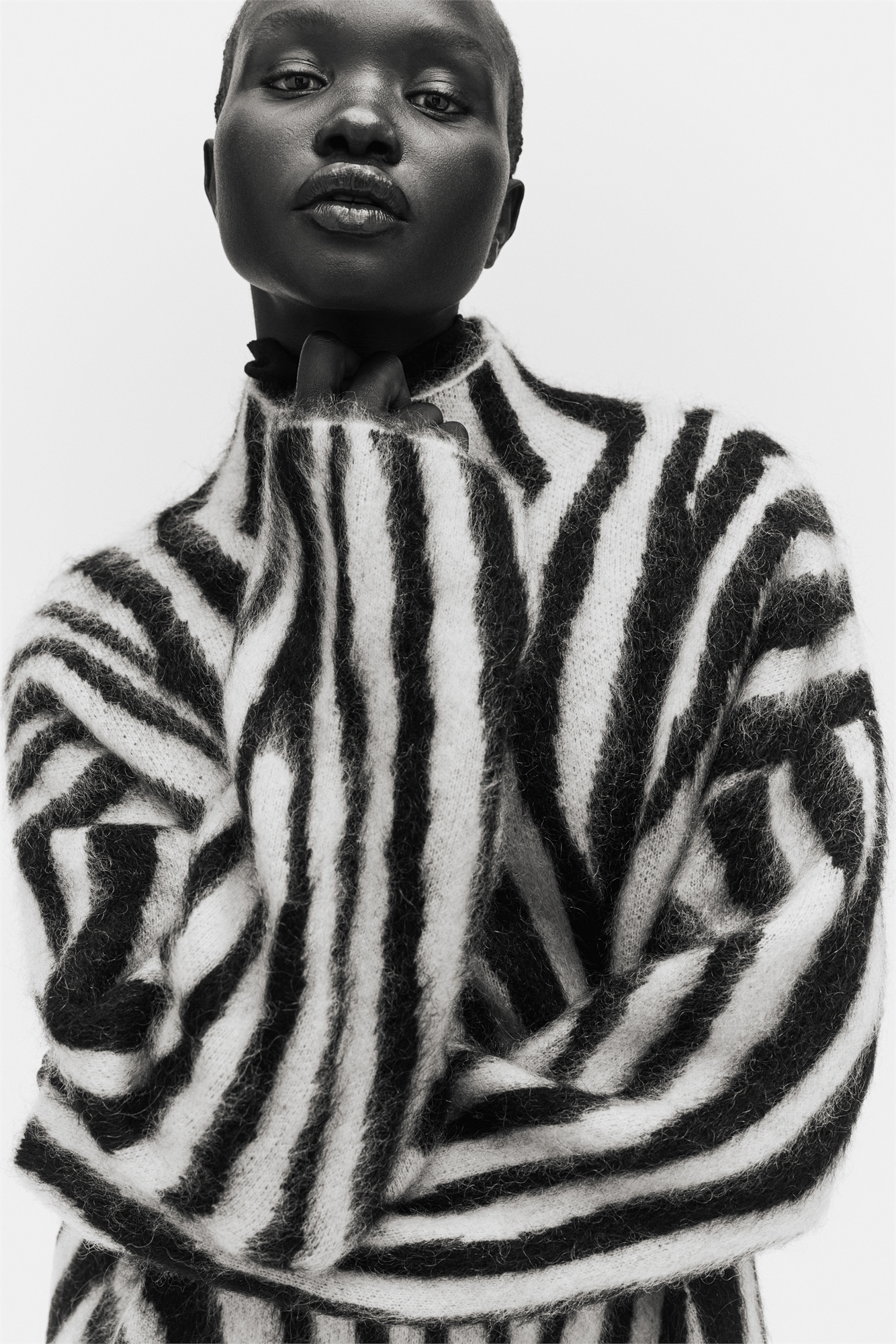 Джемпер большого размера из мягкого узорчатого трикотажа с содержанием мохера и шерсти. Черепаховая горловина, низко опущенные плечи и длинные рукава.