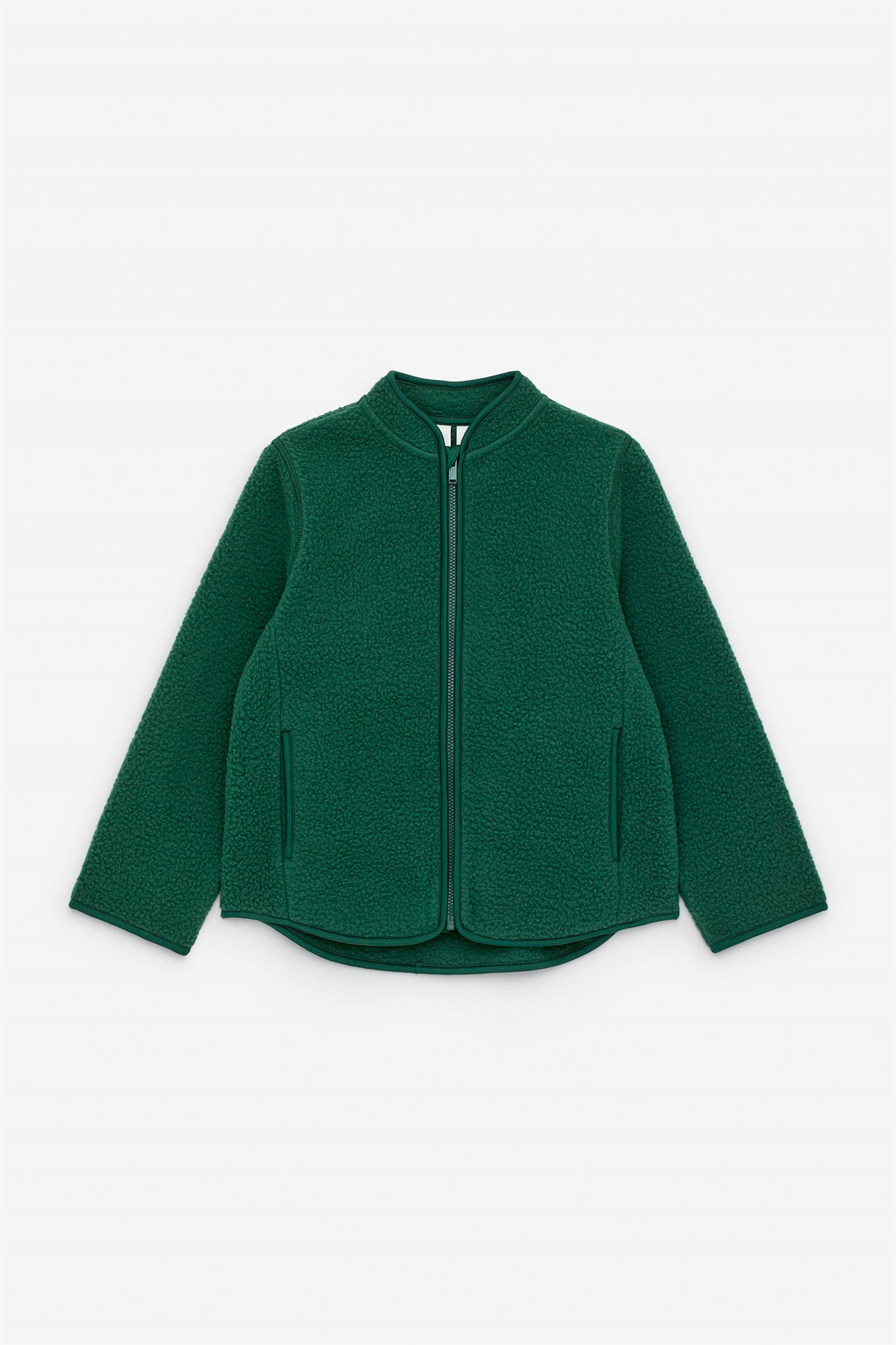 Флисовая куртка обычного покроя. Застежка-молния спереди и контрастные завязки. Изогнутая линия подола и слегка удлиненная задняя панель. Карманы в боковых швах.