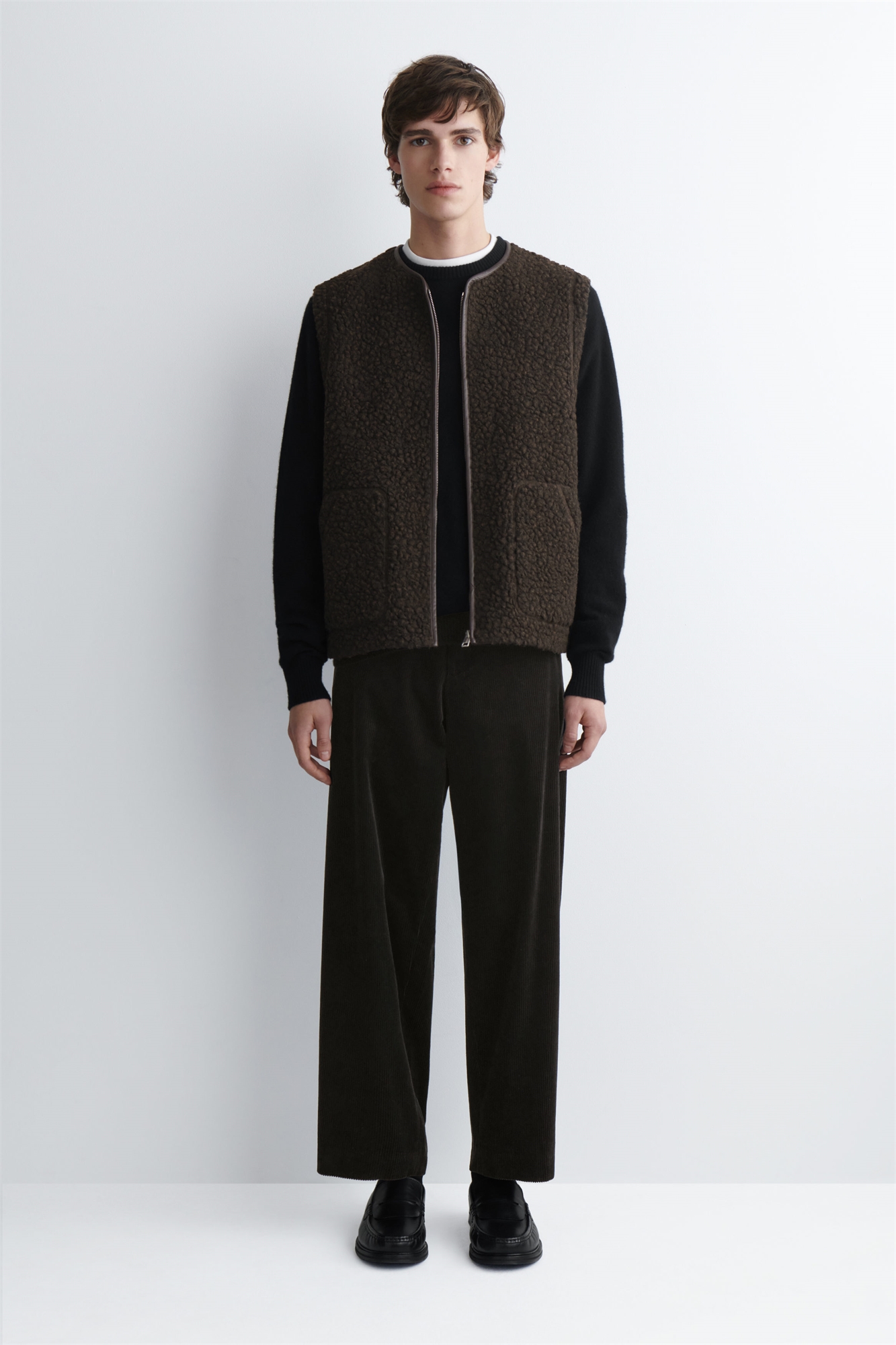 Эта современная жилетка переосмысливает коды спортивной одежды для зимы. Изготовленная из тактильного плюша, она обладает практичными функциями, которые помогут вам согреться в прохладные месяцы – обратите внимание на накладные карманы и подкладку из джерси. Края тщательно обработаны кожей для придания изделию первоклассного вида, а внутренний карман позволяет держать предметы первой необходимости под рукой. Расслабленный кройЗастежка-молнияПереработанный полиэстер - это полиэстер, изготовленный из ПЭТ-бутылок или текстильных отходов, вышедших из употребления. ПЭТ-бутылки или текстильные отходы подвергаются механической переработке и перерабатываются в новую пряжу Состав: 58% переработанного полиэстера, 25% хлопка, 17% шерсти RWS. Детали: 100% кожа. Без учета отделки / Сухая чистка Длина по спинке для размера M составляет 66 см / Модель носит размер M